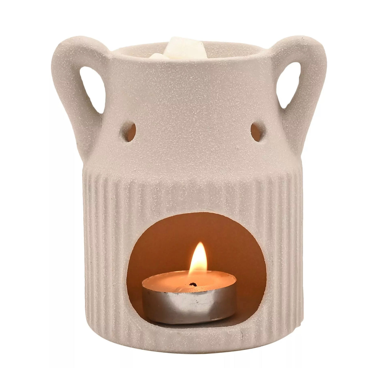 Add rustic chic to your range with this charming Hestia Ivory Coloured Ceramic Wax Melt Burner in ivory. The contemporary design, with handles and a ribbed ceramic finish, adds a modern touch to any decor while diffusing scented wax melts. • Ceramic in versatile ivory • Fits tealights and standard wax melts (not included)
