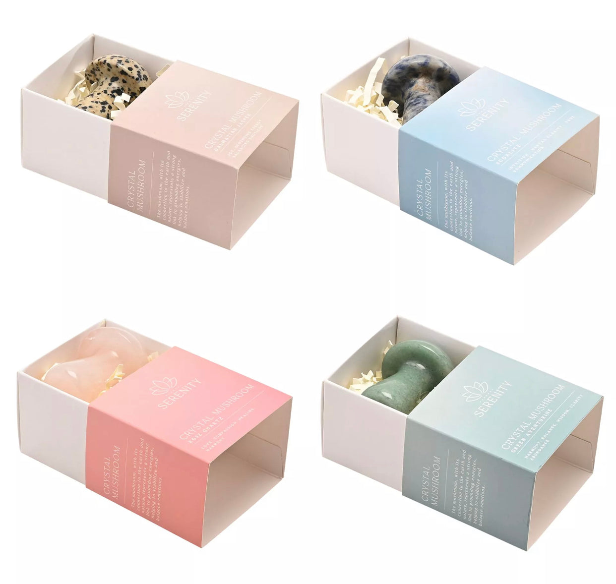 Each mushroom is a 5cms, perfect for nestling amongst indoor plants or adorning a bookshelf. Ideal for individuals drawn to healing energies, each box contains a unique crystal mushroom. This collection is perfect for gifting, or as thoughtful keepsakes.