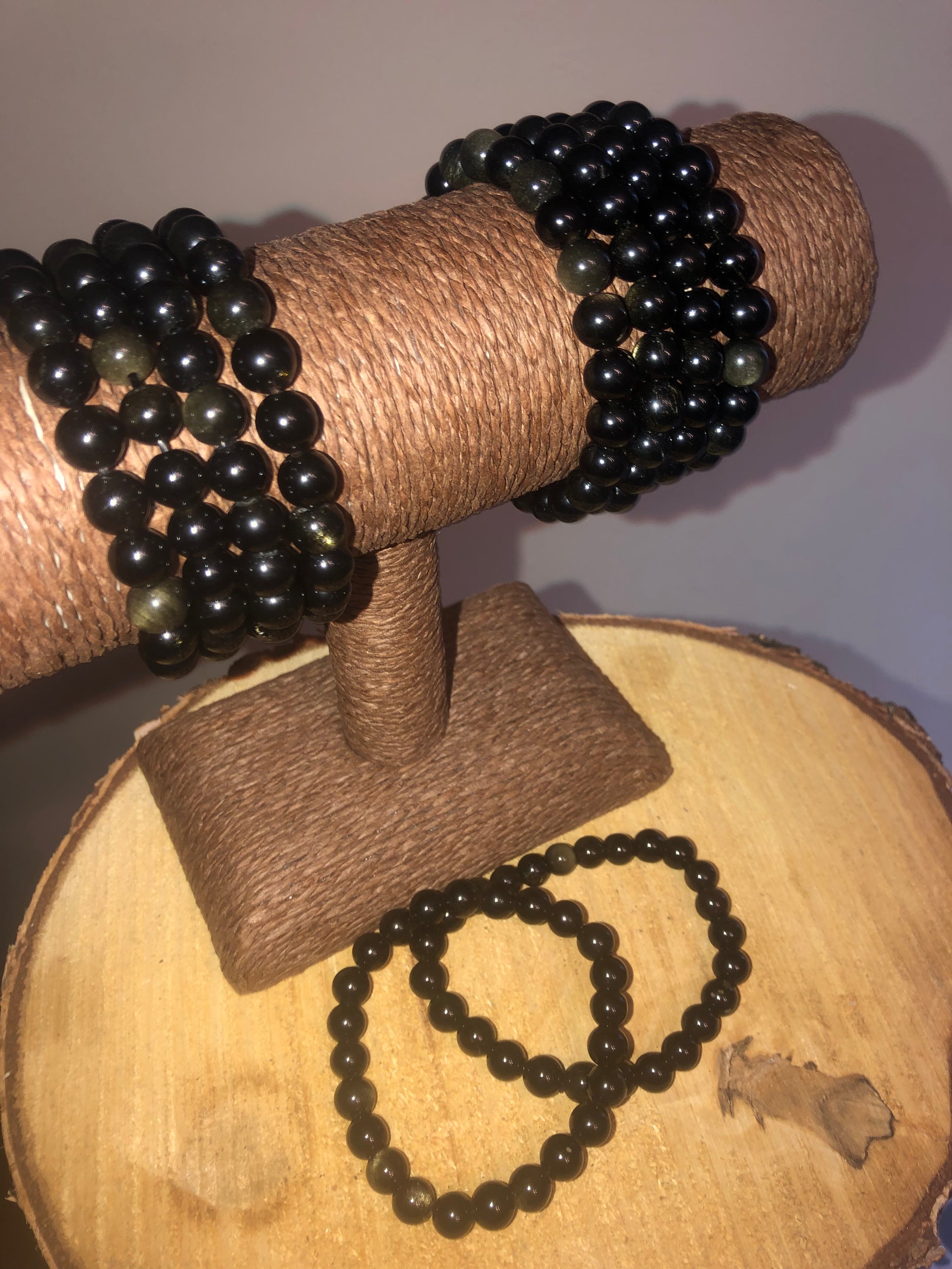 obsidian bracelet is said to promote self-reflection and inner growth, and to help release negative energy and emotions. It is also believed to have protective qualities, helping to shield the wearer from negativity and harm.